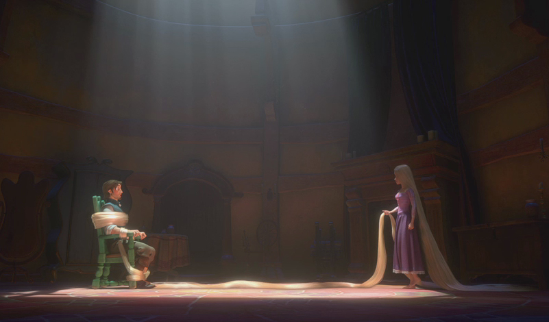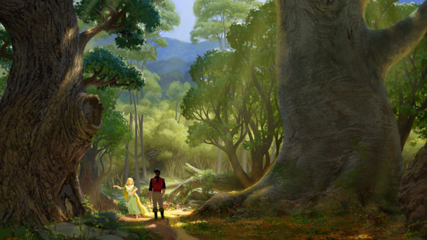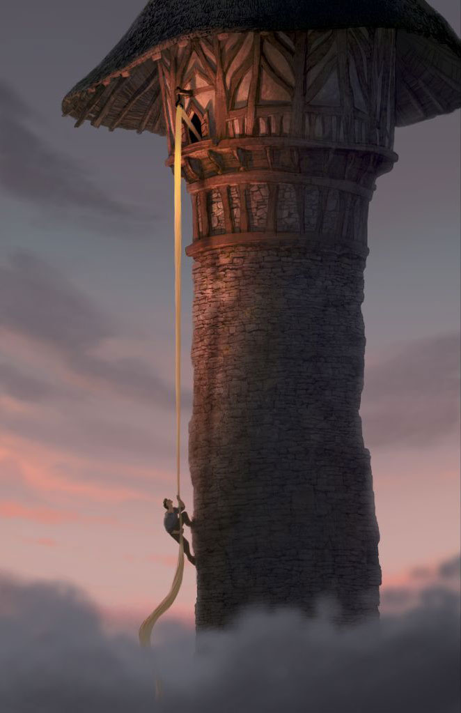 . Raiponce est inspirée du célèbre conte éponyme des frères Grimm et sera le 50ème Grand Classique Disney.. . Raiponce n'a pas échappé au triste sort des sorties cinéma: les multiples repousses! On a en effet évoqué les dates de 2007, puis été 2008, pour s'arrêter un moment à l'été 2009! Aujourd'hui, une date est fixée à Noël 2010.. . Le film sera réalisé en images de synthèse... mais très influencé par les techniques de l'animation traditionnelle. On ne connaît pas encore le rendu final, tout a fait original et novateur, mais les rumeurs vont dans le bon sens. De plus, l'atmosphère sera romantique, mais particulièrement sombre... . Le projet original du film avait pour nom "Rapunzel Unbraided" (comprenez "Raiponce dénattée"). En outre le scénario était totalement différent du conte original et la visée était très encrée burlesque et parodique (à l'image du succès de Shrek). Dans cette première version, l'histoire mettait en scène deux adolescents de notre époque, qu'une sorcière fatiguée des fins heureuses des contes de fées envoyait dans le conte de Rapunzel... dont l'apparence est celle d'un écureuil. La jeune fille, Claire, prenait alors le rôle de la célèbre héroïne aux longs cheveux, et son ami, Vincent, celui du Prince Charmant. Cette version a été annulée au profit d'un retour à un conte de fées traditionnel dans la lignée de La Petite Sirène ou Cendrillon. . News du 13/02/2010: Nous vous en parlions il y a quelques jours, et la direction des Disney Animation Studios a tranché: l'adaptation du conte Rapunzel sera proposée sur les écrans sous le titre Tangled, qui veut dire "Emmêlé" en français. C'est Roy Conli, le producteur du film, qui a officialisé le changement via Facebook : " Hey everyone, I'm Roy Conli, producer of Disney's next animated film. I have some exciting news to share, and it was important to me that YOU guys – the Disney fans – hear it first. I want to tell you about Walt Disney Animation Studio's 2010 release, Tangled. It’s a really fresh, smart take on the Rapunzel story. In our film, the infamous bandit Flynn Rider meets his match in the girl with the 70 feet of magical golden hair. We're having a lot of fun pairing Flynn, who's seen it all, with Rapunzel, who's been locked away in a tower for 18 years. I’m so proud of the crew working on this film – they’re doing a fantastic job creating an awesome story with great characters and a stunning world – and it's all going to look amazing in 3D. All of us here at the studio are incredibly excited for you to see Tangled when it comes out in theaters this November." Ce changement de titre s'opère afin d'attirer un public plus large dans les salles, ce qui avait manqué à La Princesse et la Grenouille. Ce problème n'étant visiblement pas extensible à la France au regard du grand succès du dernier grand classique Disney, on ne peut que se demander quels seront les choix de Disney France... Une traduction "mot à mot" semble peu probable, la langue française n'aimant pas les participes passés isolés. Enchanted est bien devenu Il Etait Une Fois chez nous...
